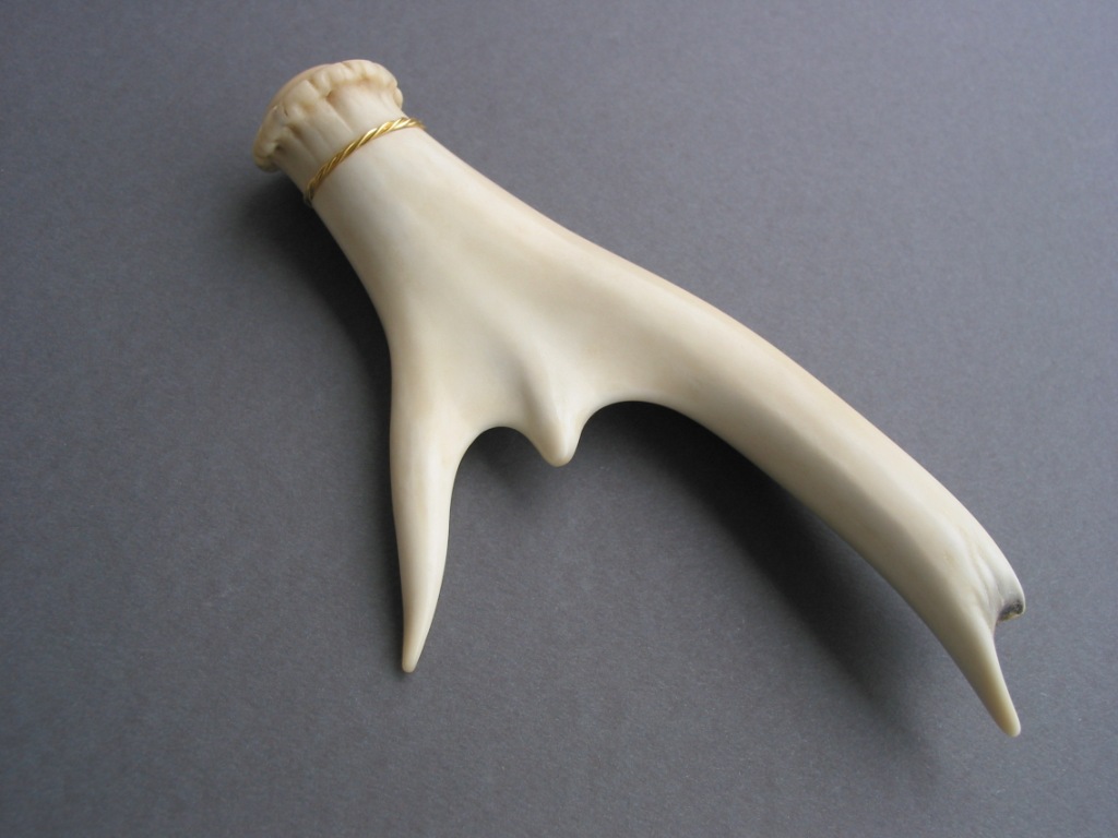 Handschmeichler, fein geschliffenes, poliertes Geweih, 900 Gold